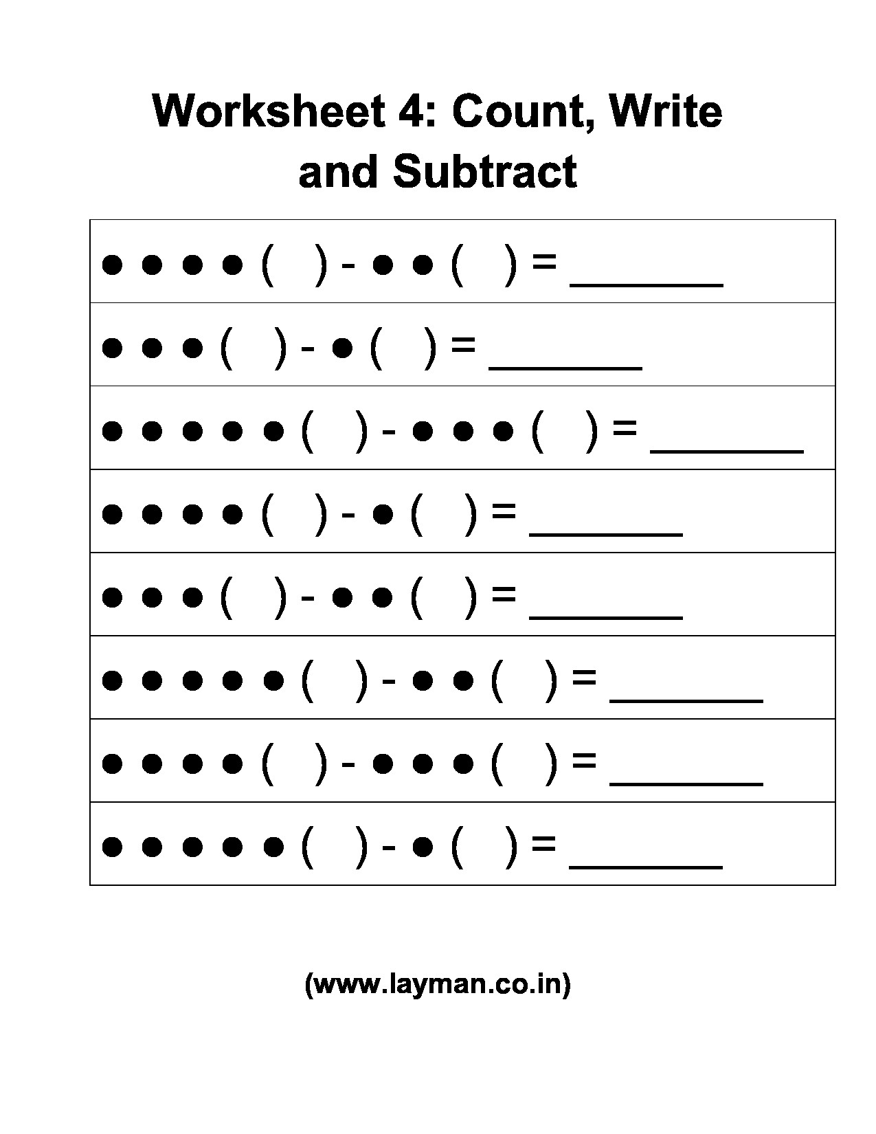 Subtraction Worksheet for Age 6